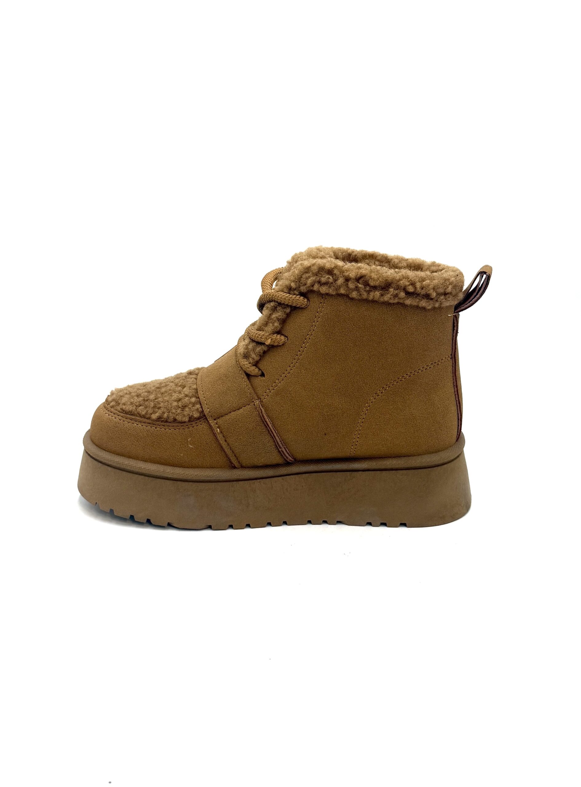 להיט! דגם 682-6 נעלי פרווה פלטפורמה שרוכים קצר – צבע: כאמל מומלץ להזמין מידה יותר!