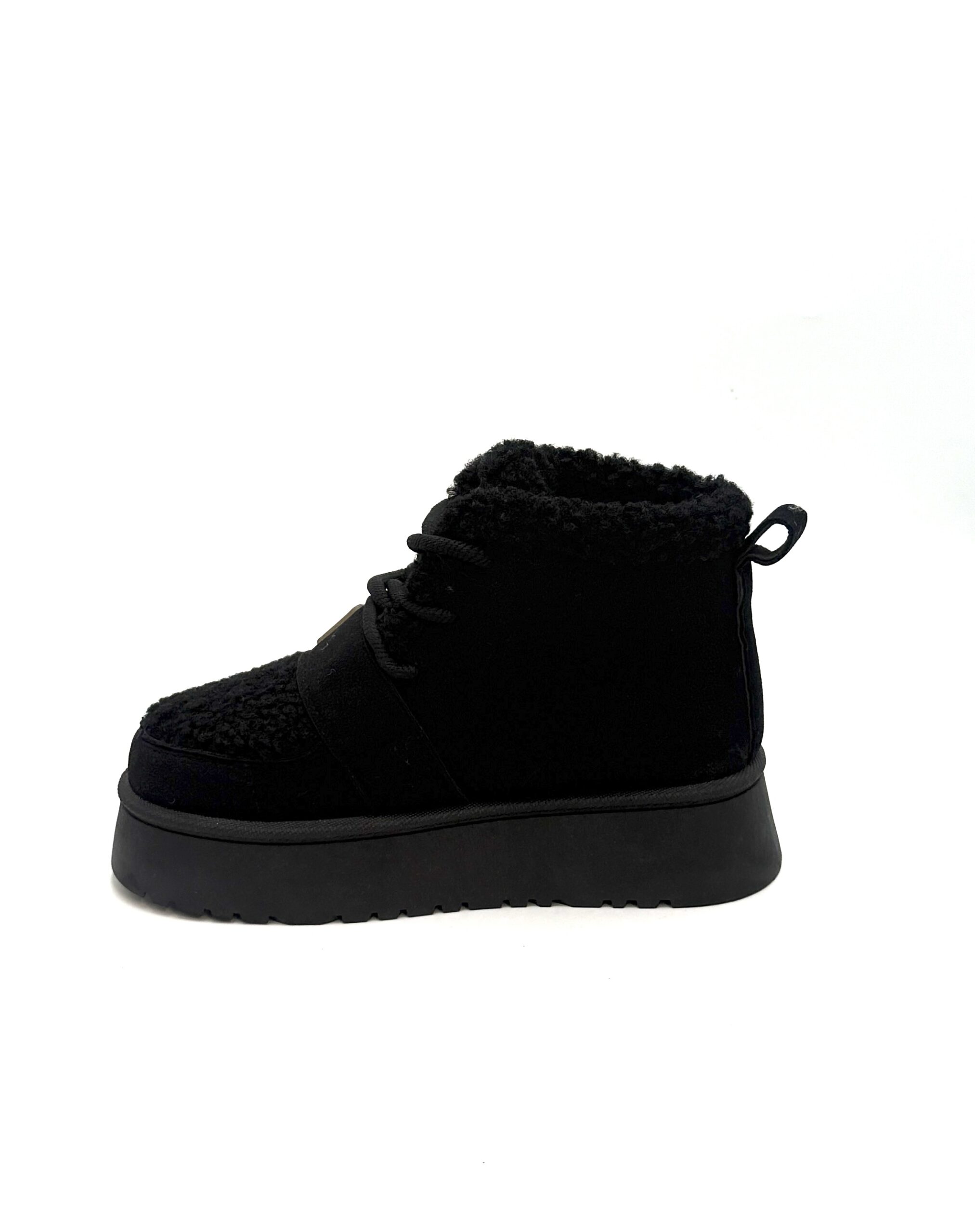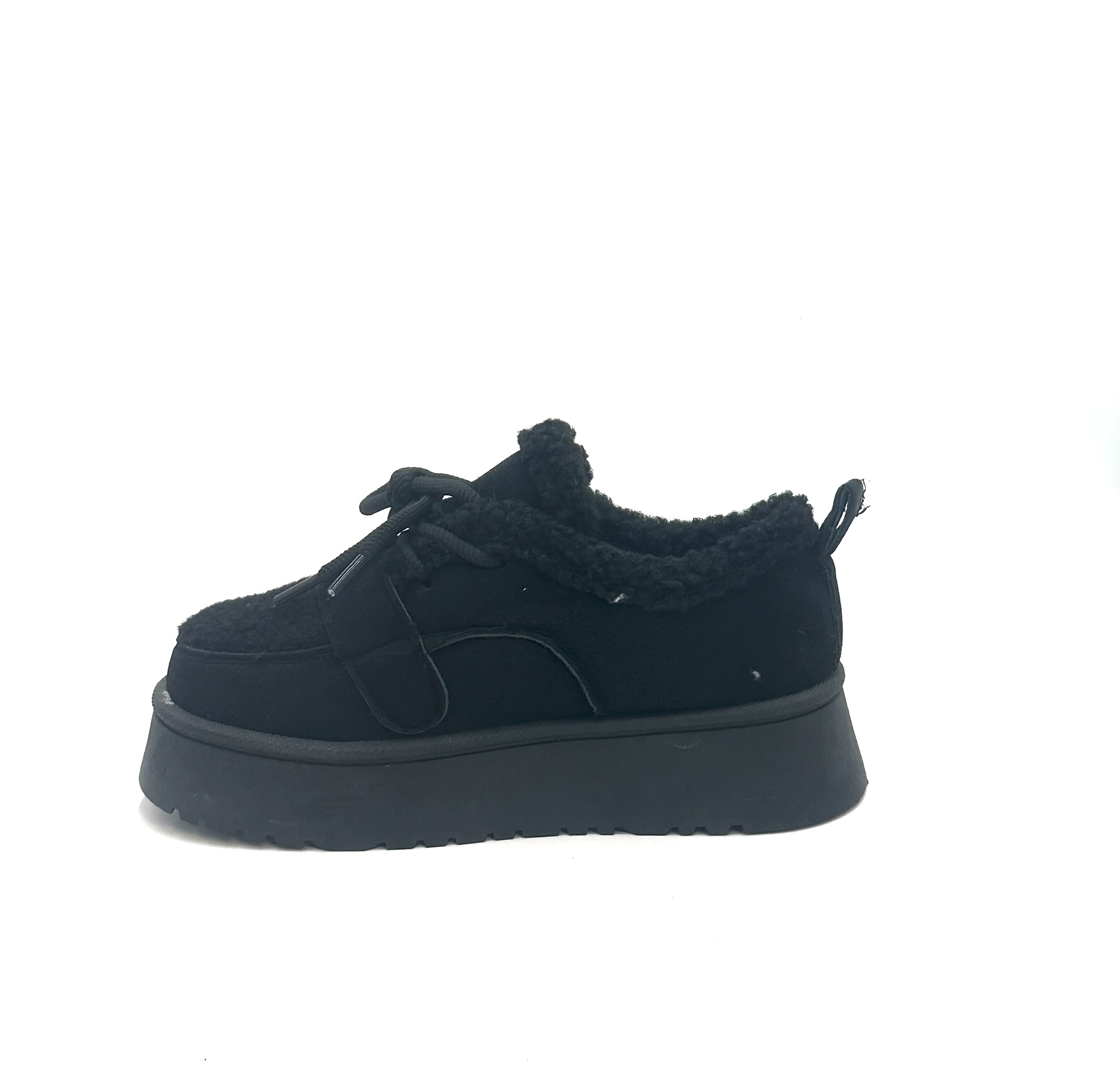 להיט! דגם 682-7 נעלי פרווה פלטפורמה שרוכים 3/4 – צבע: שחור מומלץ להזמין מידה יותר!