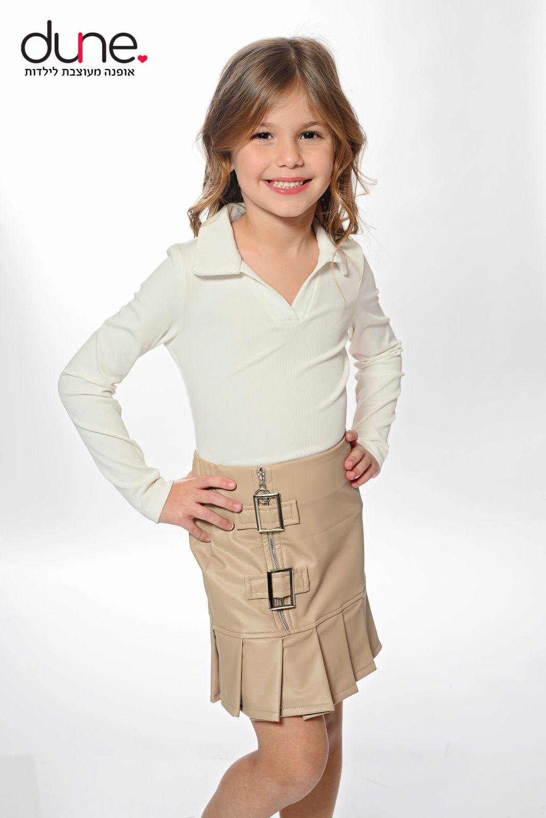 חצאית דמוי עור וחולצת צווארון