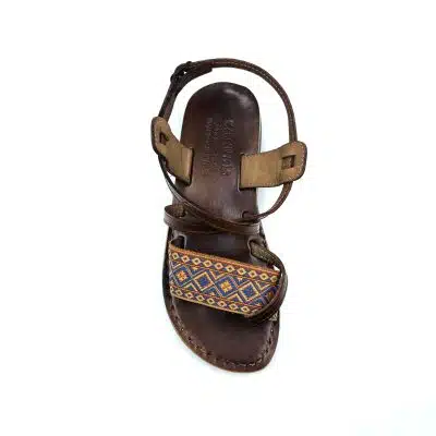 אצלנו בקטלינה מייצרים את הסנדל התנכי הקלאסי והידוע ללא חומרים מן החי מבדים מיוחדים המזכירים את מראה העור, לכן בכל הרצועות יש תפירה כפולה על מנת לעבות את הרצועות ולהתאימם למראה הסנדל המקורי.