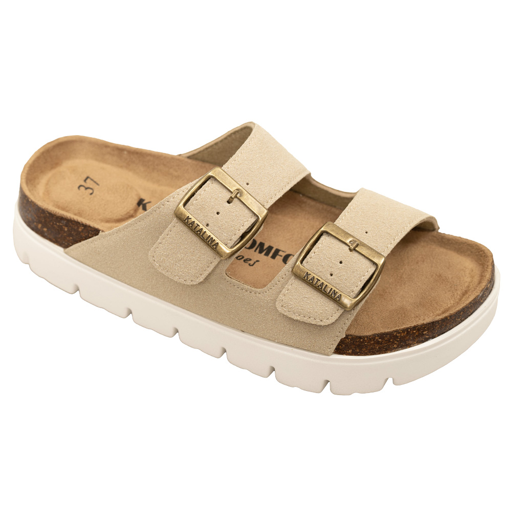 כפכפים אורטופדיים איכותיים בעלי רפידת עור נושמת וסוליית שעם אנטומית, המעניקים תמיכה מושלמת לכף הרגל לאורך כל היום.