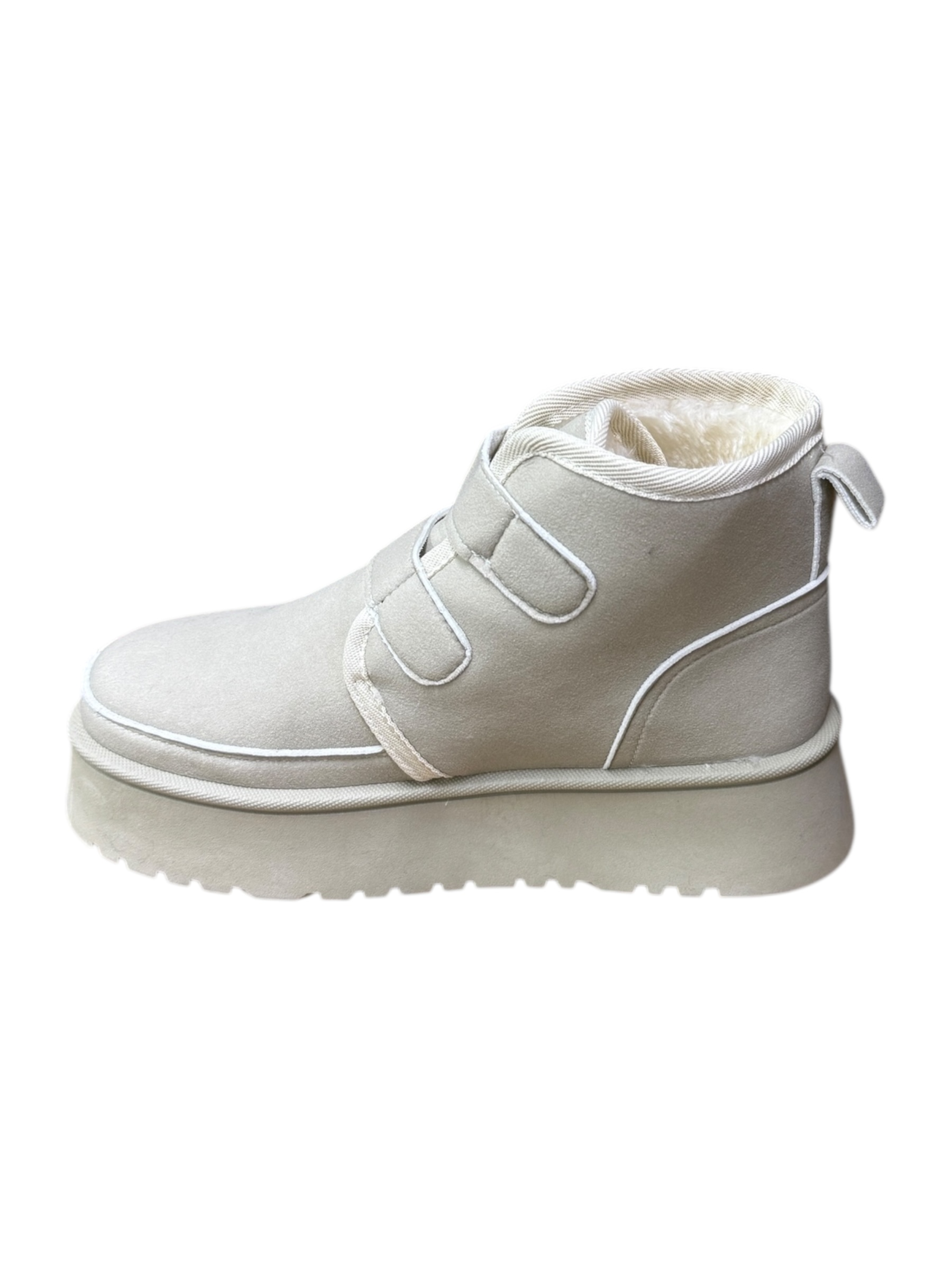 המגף עשוי מ-דמוי זמש איכותי ונעים למגע, עם בטנה מחממת לשמירה על חום הרגל בימים הקרים. סוליית פלטפורמה עבה וקלת משקל מעניקה נוחות לאורך כל היום, יציבות והליכה רכה.